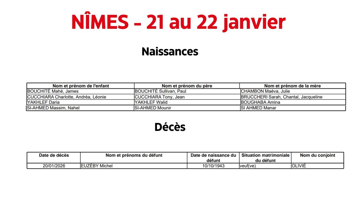 État civil à Nîmes : naissances et décès du 21 au 22 janvier 2023