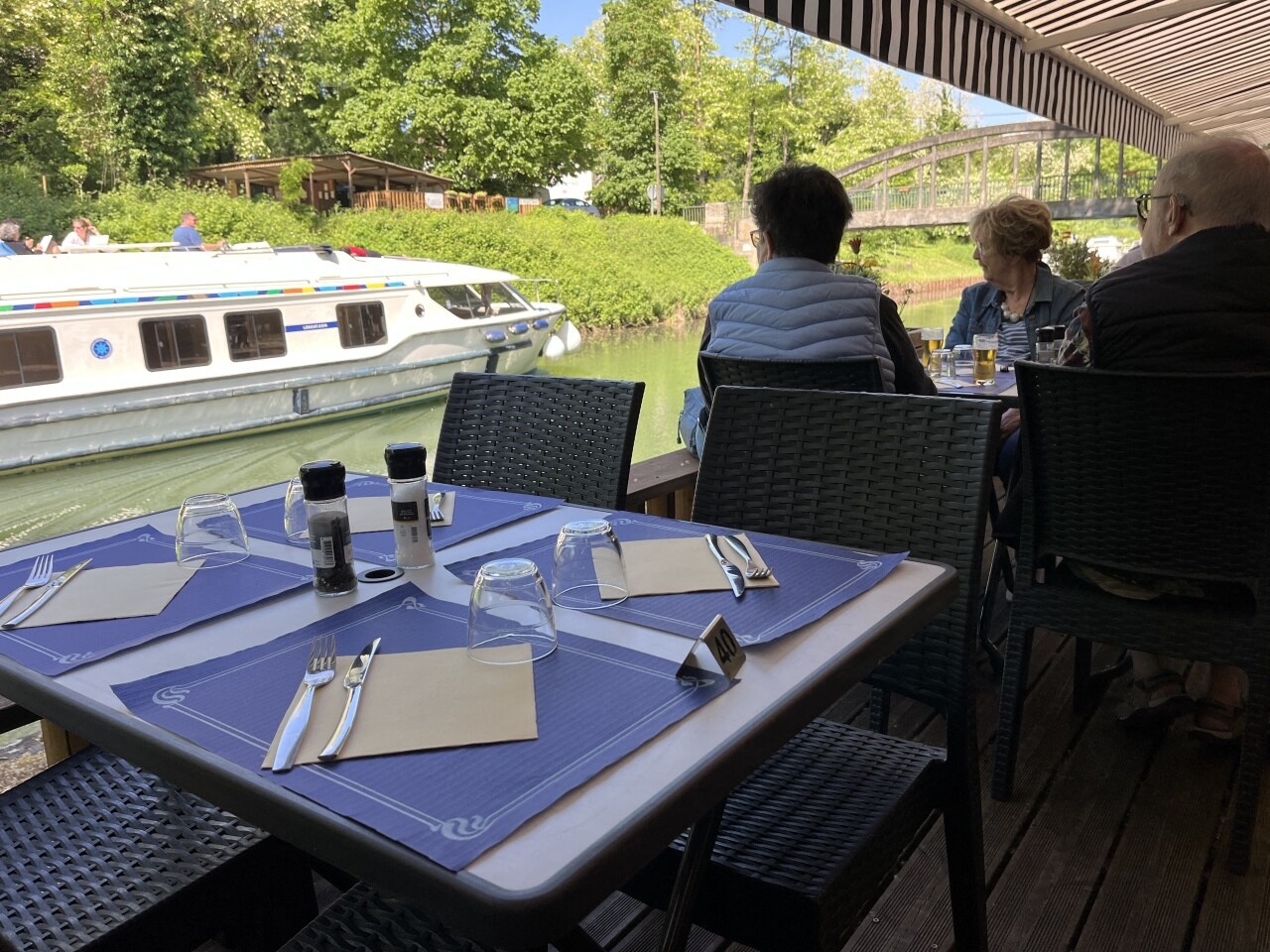 L’une des particularités du restaurant est sa capacité à servir les plaisanciers directement sur leur bateau. C’est, selon Marcel, une des raretés dans la région : « Je pense être le seul restaurant à avoir un quai sur le canal. Quand les bateaux arrivent, ils se mettent à quai, on leur amène la carte et on les sert directement dans le bateau. » Cette approche unique permet de combiner la convivialité d’un repas en extérieur avec les plaisirs simples d’une croisière sur le canal, ajoutant une dimension ludique à l’expérience culinaire.